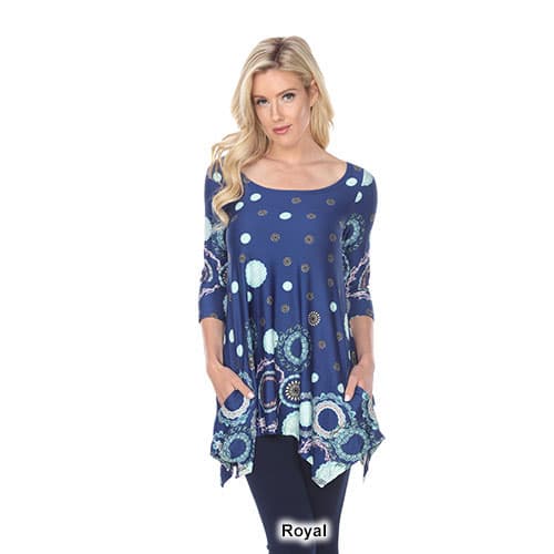 Description This Womens White Mark Erie tunic is flattering while draping stunningly over your body. It features a bold and flirty print with 3/4 length sleeves and a dashing...