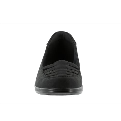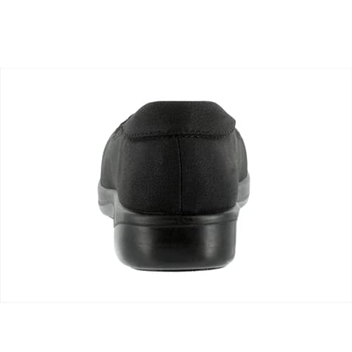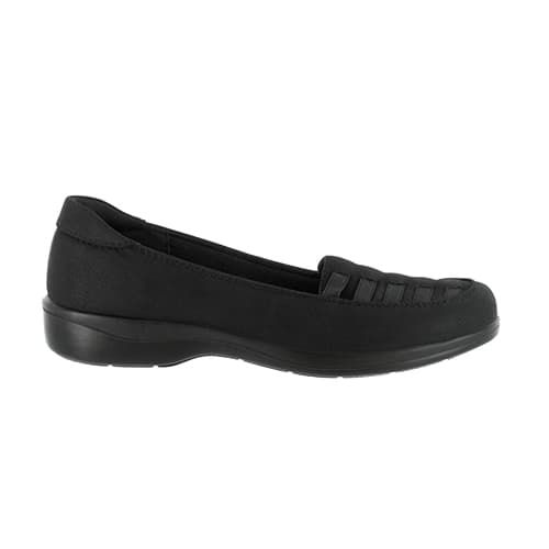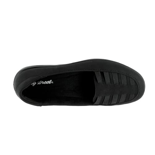 These Womens Easy Street Genesis loafers have a man made upper with elastic bands across the vamp for a comfortable fit, padded Achilles area, microsuede lining, and a padded insole. The lightweight and flexible PU unit bottom offers a 1" heel.