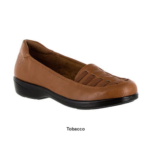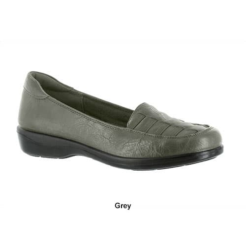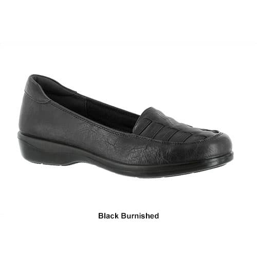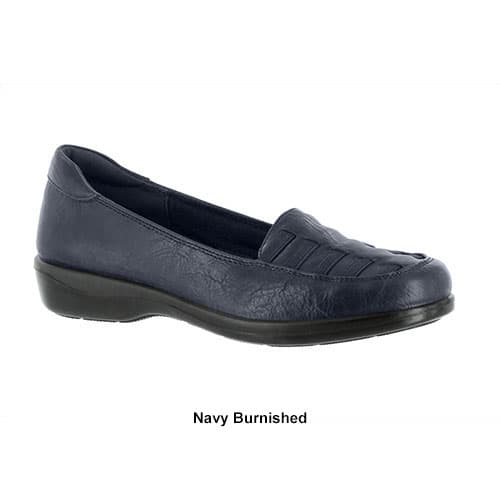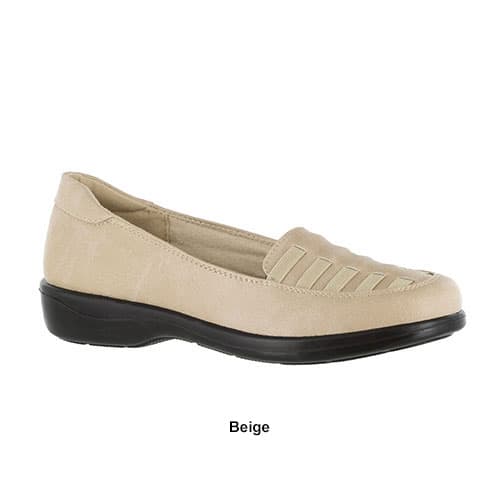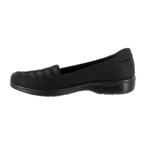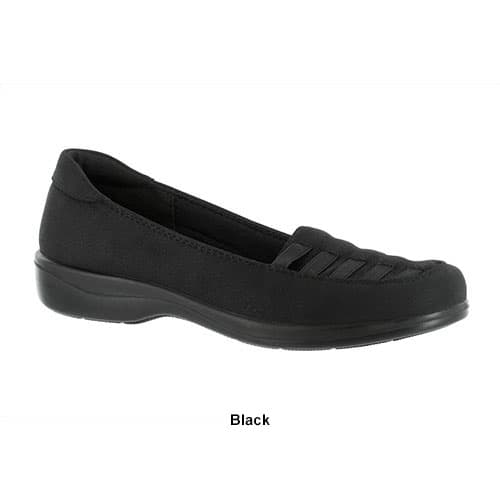 Description These Womens Easy Street Genesis loafers have a man made upper with elastic bands across the vamp for a comfortable fit, padded Achilles area, microsuede lining, and...