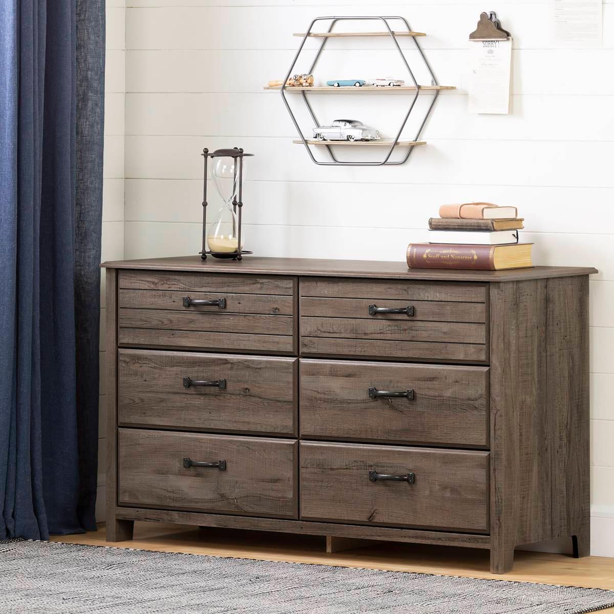 This South Shore Asten dresser will blend perfectly with your kid’s classic style room – or even your own. This piece, with its rich, timeless finish, will add a touch of distinction to your decor. Its great design and handy storage mean you’ll enjoy it for years to come. Featuring 6 large drawers with detailed metal handles, this double dresser provides plenty of room for clothes, linens or general storage. Including metal drawer slides for smooth and quiet use. With 6 different compartments, staying organized has never been easier. You can even use the flat top for additional organization or feature your favorite decorations.