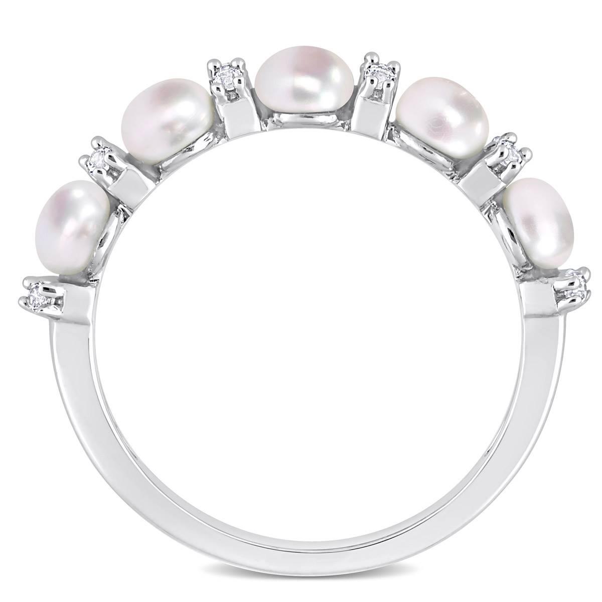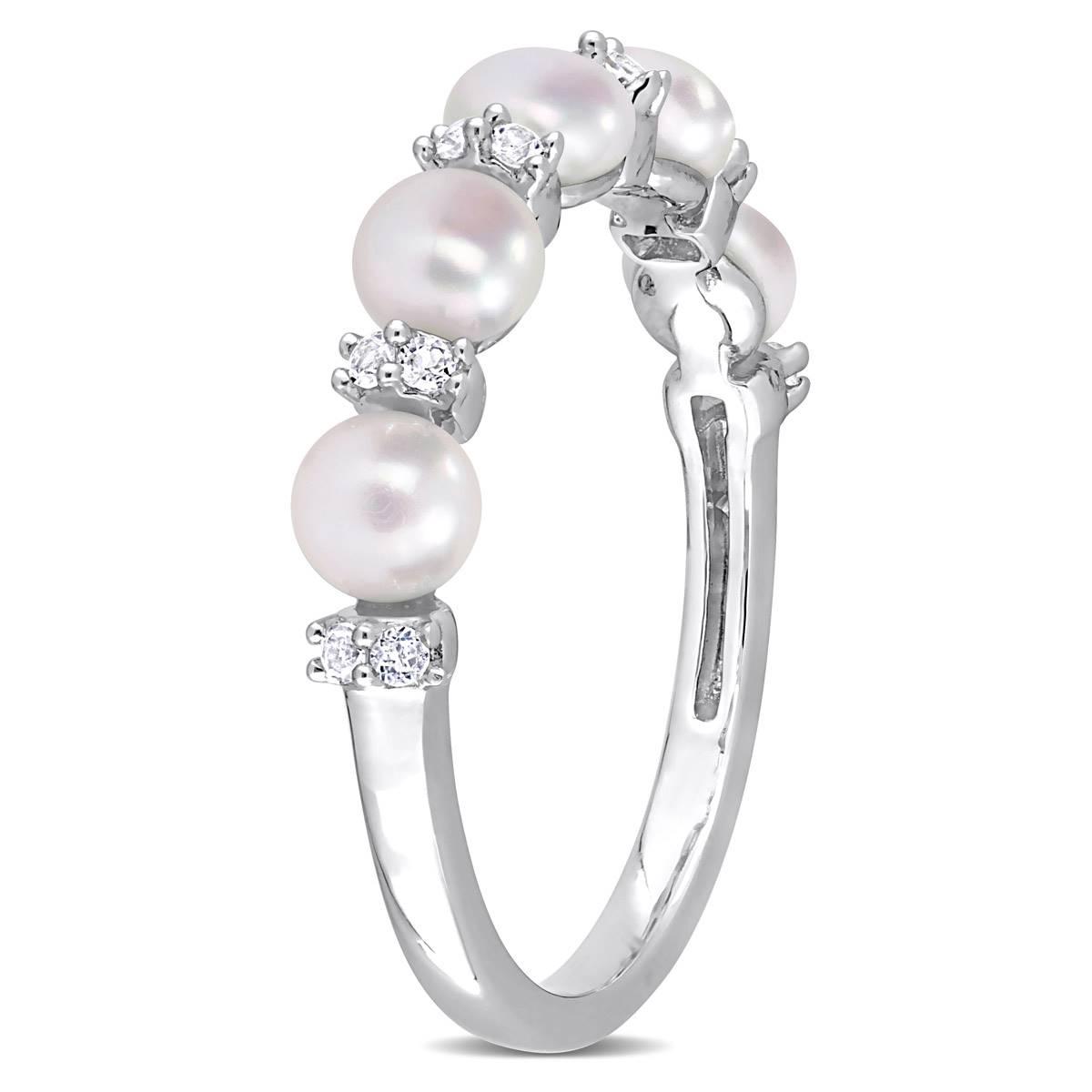 Description Dazzle her with this Gemstone Classics™ pearl and topaz semi-eternity ring. Crafted in lustrous sterling silver, the ring features five pearls along with 12 white...