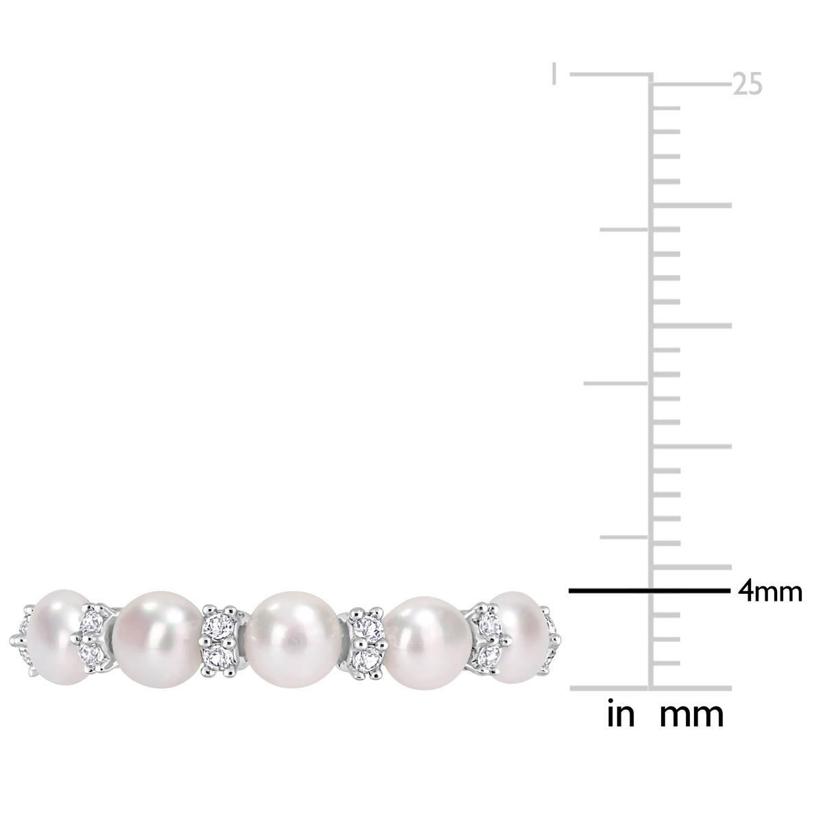 Dazzle her with this Gemstone Classics™ pearl and topaz semi-eternity ring. Crafted in lustrous sterling silver, the ring features five pearls along with 12 white topaz gemstones. Elegant and eye-catching, this ring is a valuable addition to any jewelry collection.