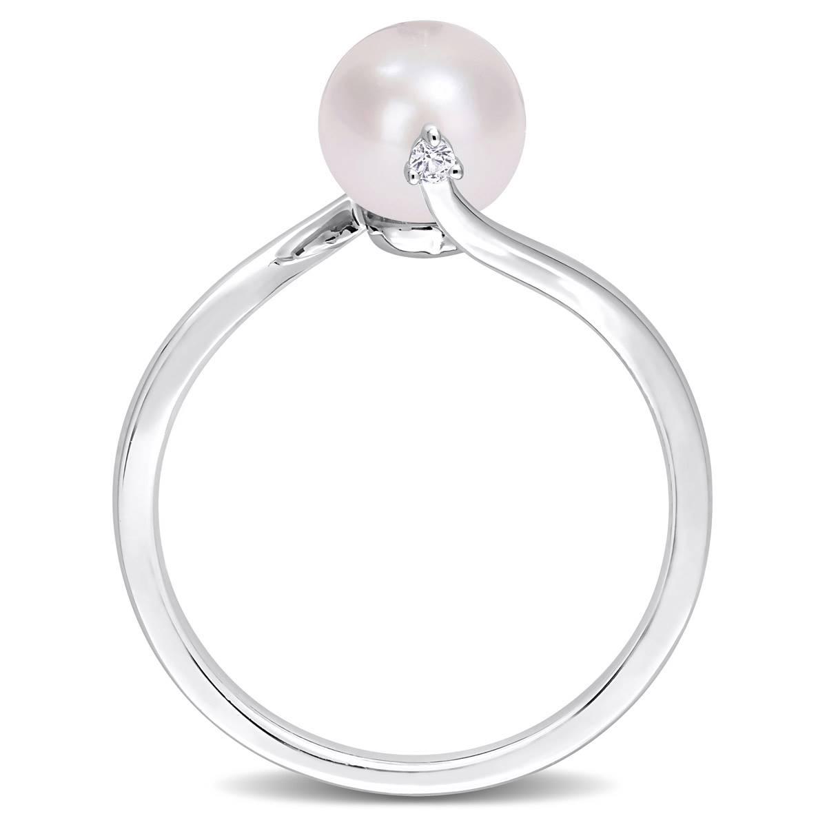 Description Surprise her with this Gemstone Classics™ pearl and sapphire bypass ring. Crafted in lustrous sterling silver, it features a pearl at the center, with two diamonds...
