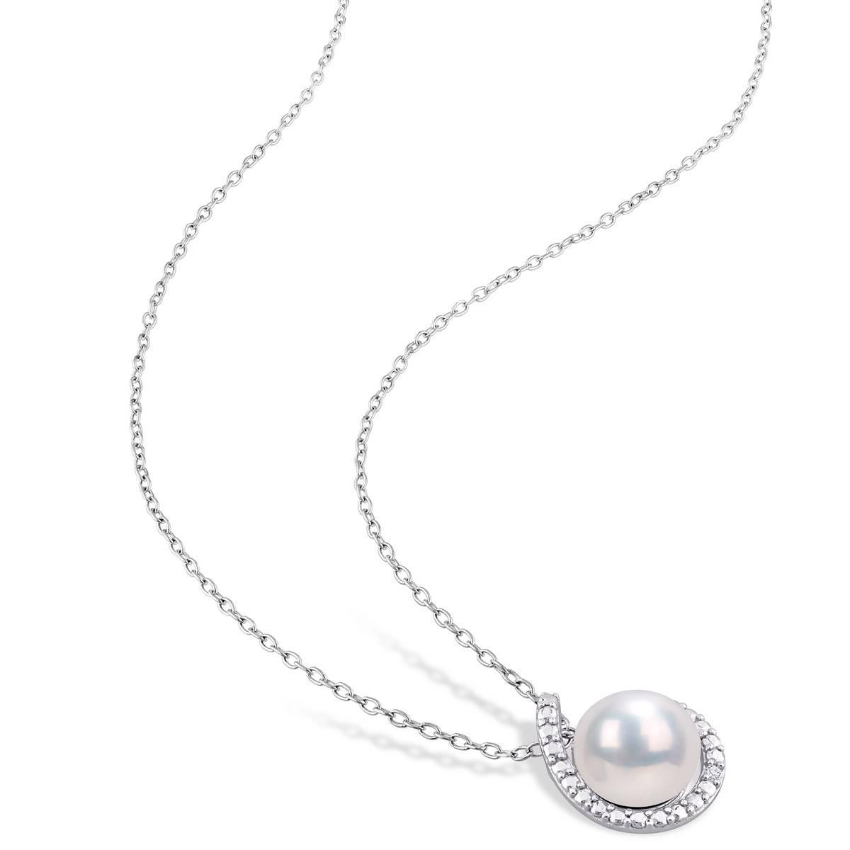 Add a delicate touch of sparkle to your favorite look with this Gemstone Classics™ pearl and diamond halo pendant. Enhanced with a high polish finish, the marvelous pendant with chain is a perfect addition to any jewelry collection. The gorgeous pendant with a chain is perfect for a woman with a classy sense of style.
