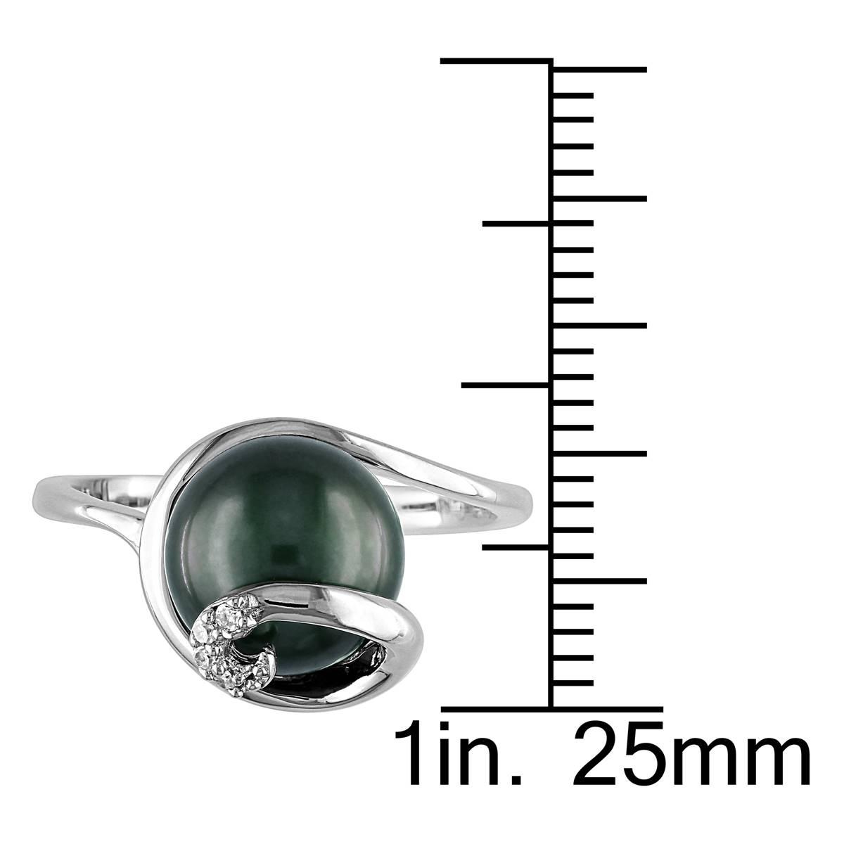 Treat yourself or someone you love with this Gemstone Classics™ black Tahitian pearl swirl ring. Featuring a 9-9.5mm black Tahitian pearl set in lustrous sterling silver, the fashion ring is accented with four round-cut buttercup-set diamonds in a swirl design. It makes a beautiful and unique addition to any jewelry collection.