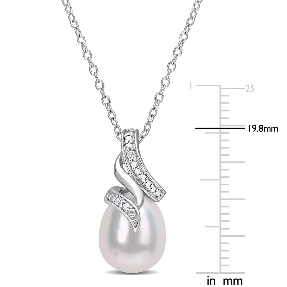 Add some shimmer to your outfit with this Gemstone Classics™ pearl and diamond twisted drop pendant. Enhanced with a high polish finish, this pendant is a valuable addition to any jewelry collection. Great for everyday wear or special occasions.