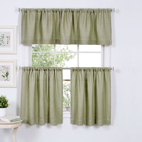 These Cameron rod pocket kitchen curtains from Elrene feature a crisp classic look in beautiful updated colors with hemstitch detail. The wonderful detailing of these tiers will give your window a hint of elegance and sophistication.