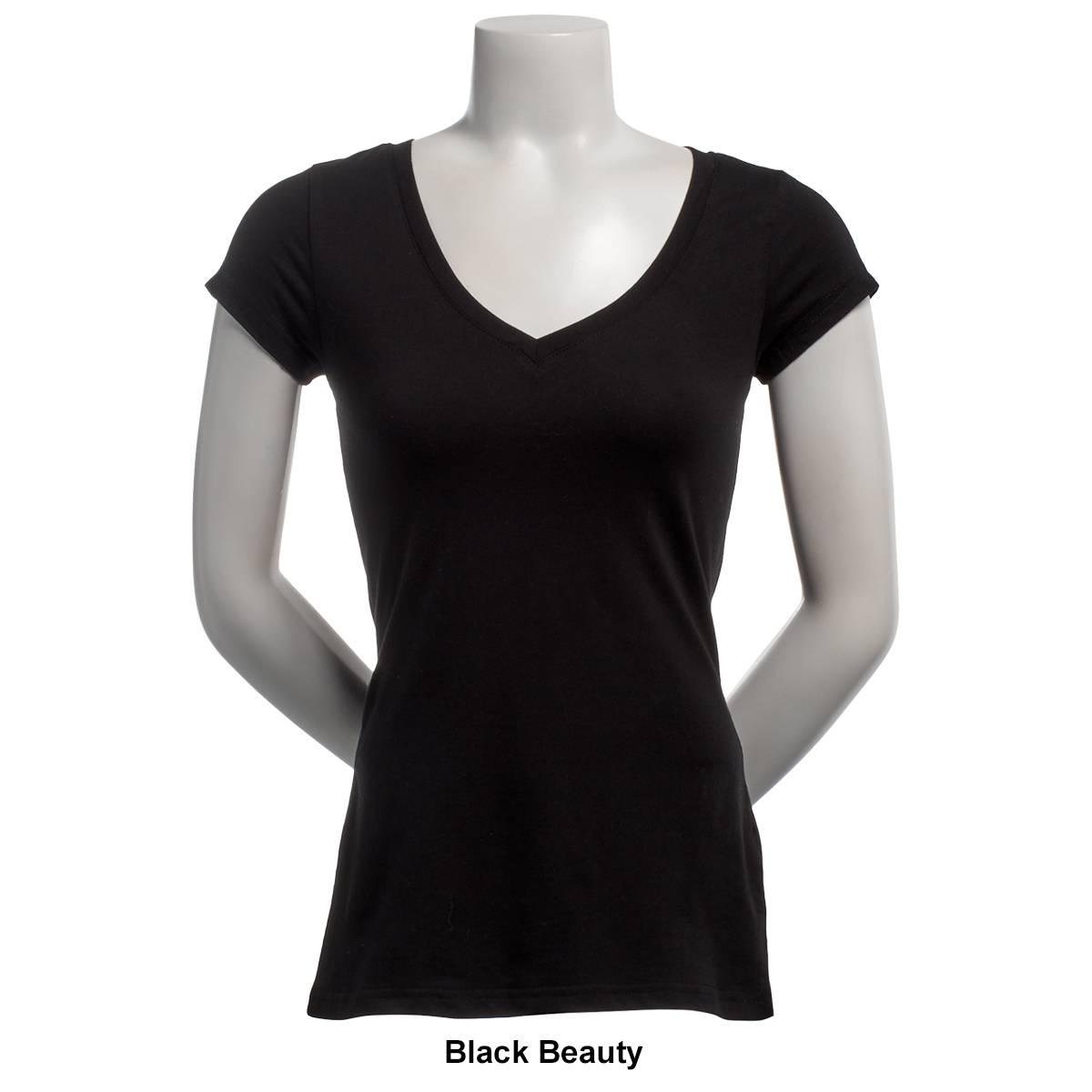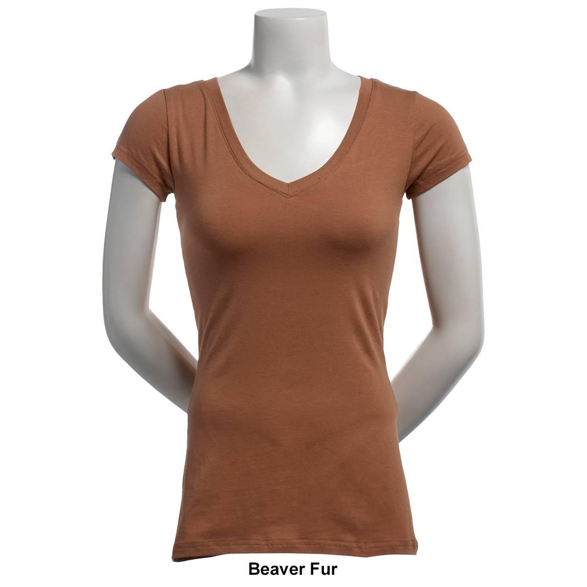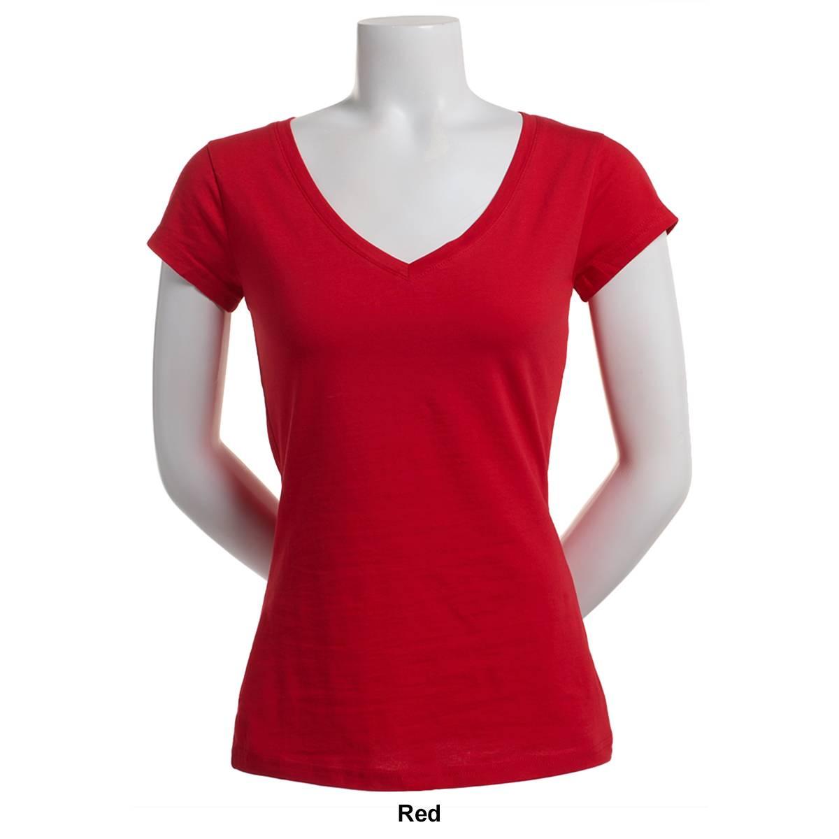Description Pattern: SolidSleeve Length: Cap SleeveNeck: V-Neck Stretch Care: Machine Wash, Tumble Dry Material: Cotton, Spandex Item #: 37779 Pricing Disclosure