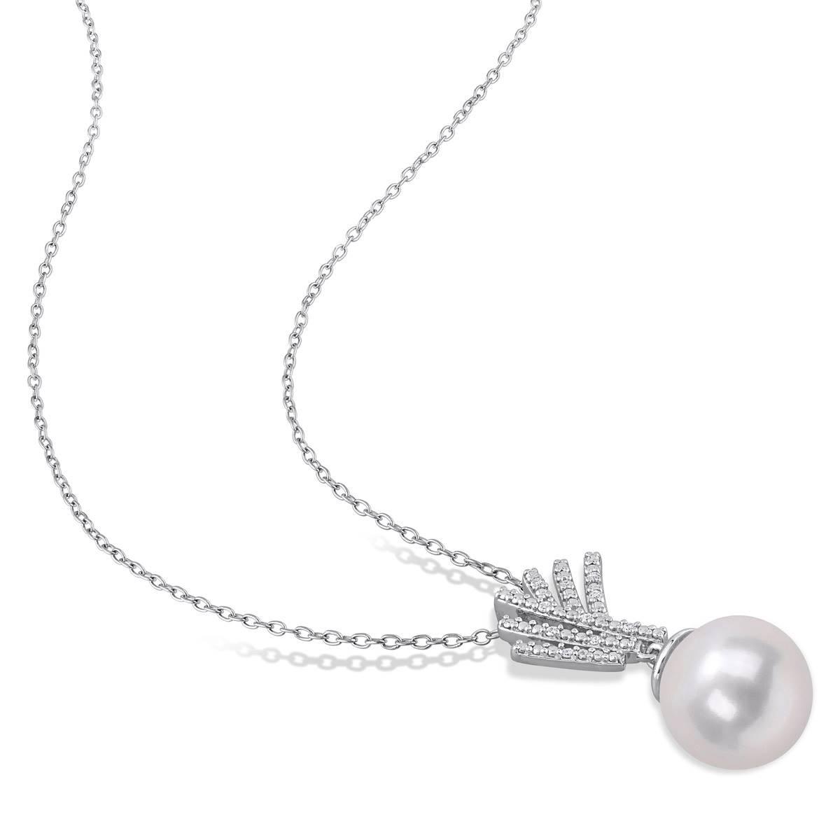Look remarkable with this Gemstone Classics™ pearl and diamond drop pendant. Enhanced with a high polish finish, the pendant is suspended on an 18-inch round cable chain. Coordinate this pearl and diamond accent pendant with a chain with any ensemble for an elegant look.