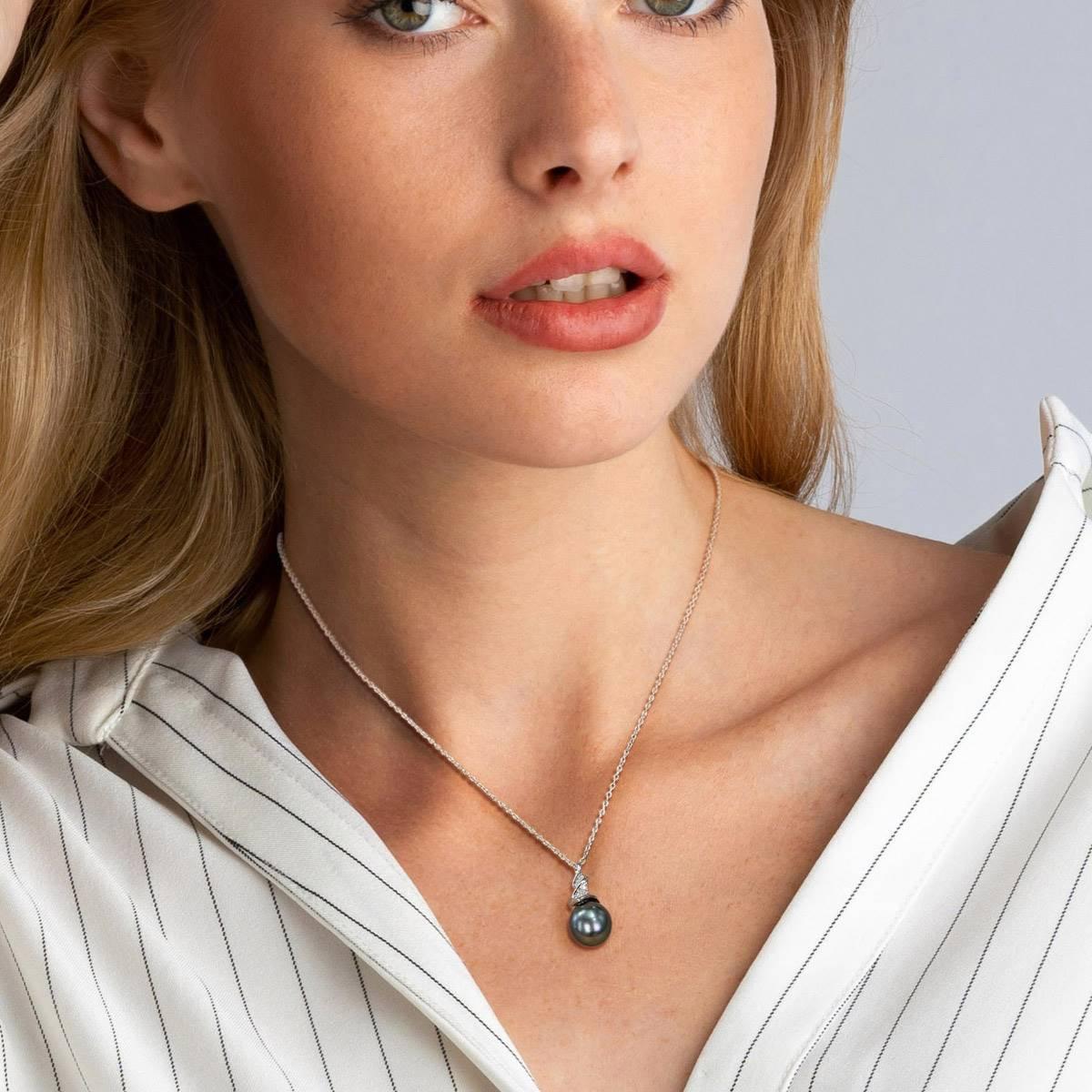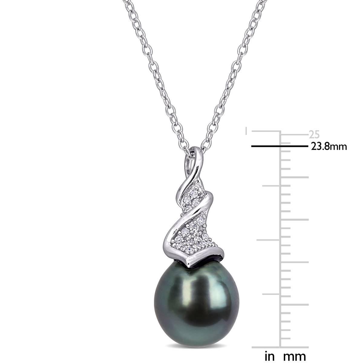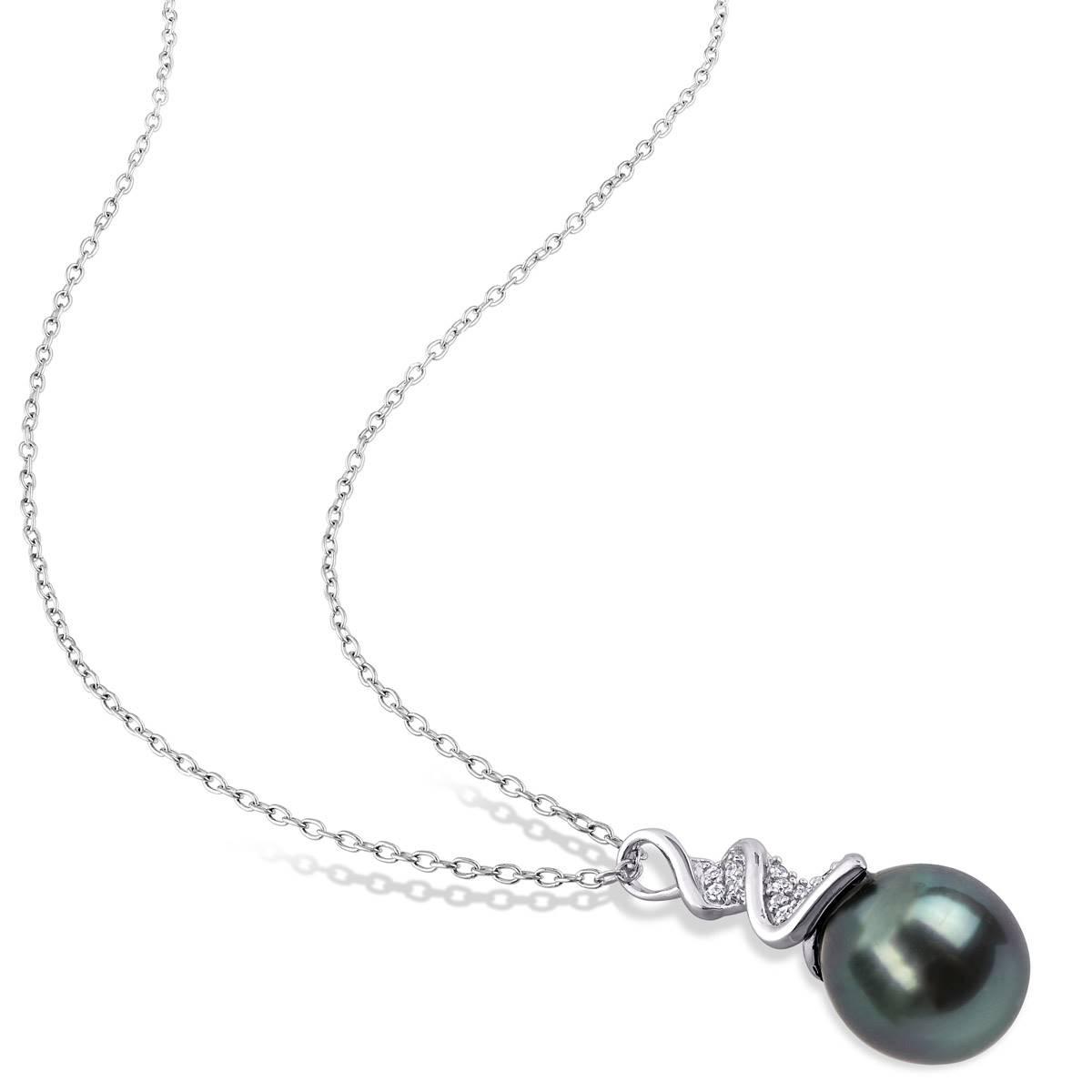 Dazzle everyone when you wear this Gemstone Classics™ black Tahitian pearl twist drop pendant necklace. Crafted in lustrous sterling silver, it features a drop-shape black Tahitian pearl at the center crowned by 17 round-cut, pave-set diamonds. This marvelous pearl and diamond pendant makes the perfect addition to any jewelry collection.