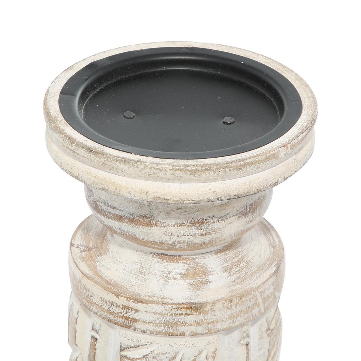 Sometimes a little candlelight is all it takes to make a space feel more inviting. Made of solid mango, this set of three 9th & Pike® Farmhouse-Style Wooden Candle Holders can help you set the mood. Each candle has a sandy color and a faded design on the midsection. Add them to a farmhouse- or rustic-style room.