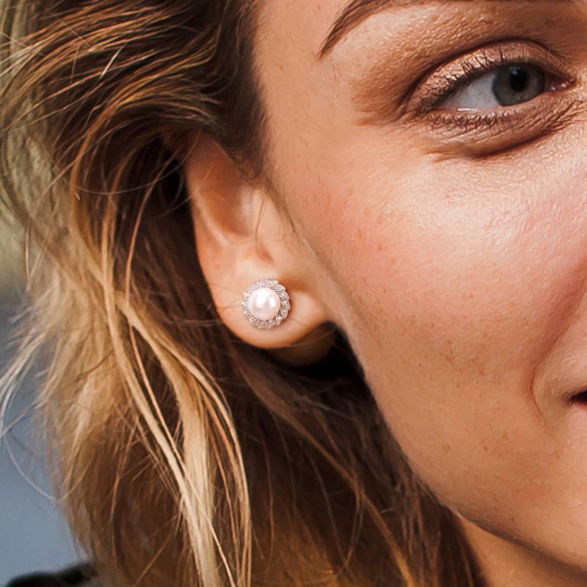 Add some glitter to your outfit with these Gemstone Classics™ pearl halo pearl stud earrings. Enhanced with a high polish finish, the earrings are secured with butterfly closures. Pair these earrings with a matching pendant and complete your gorgeous look.