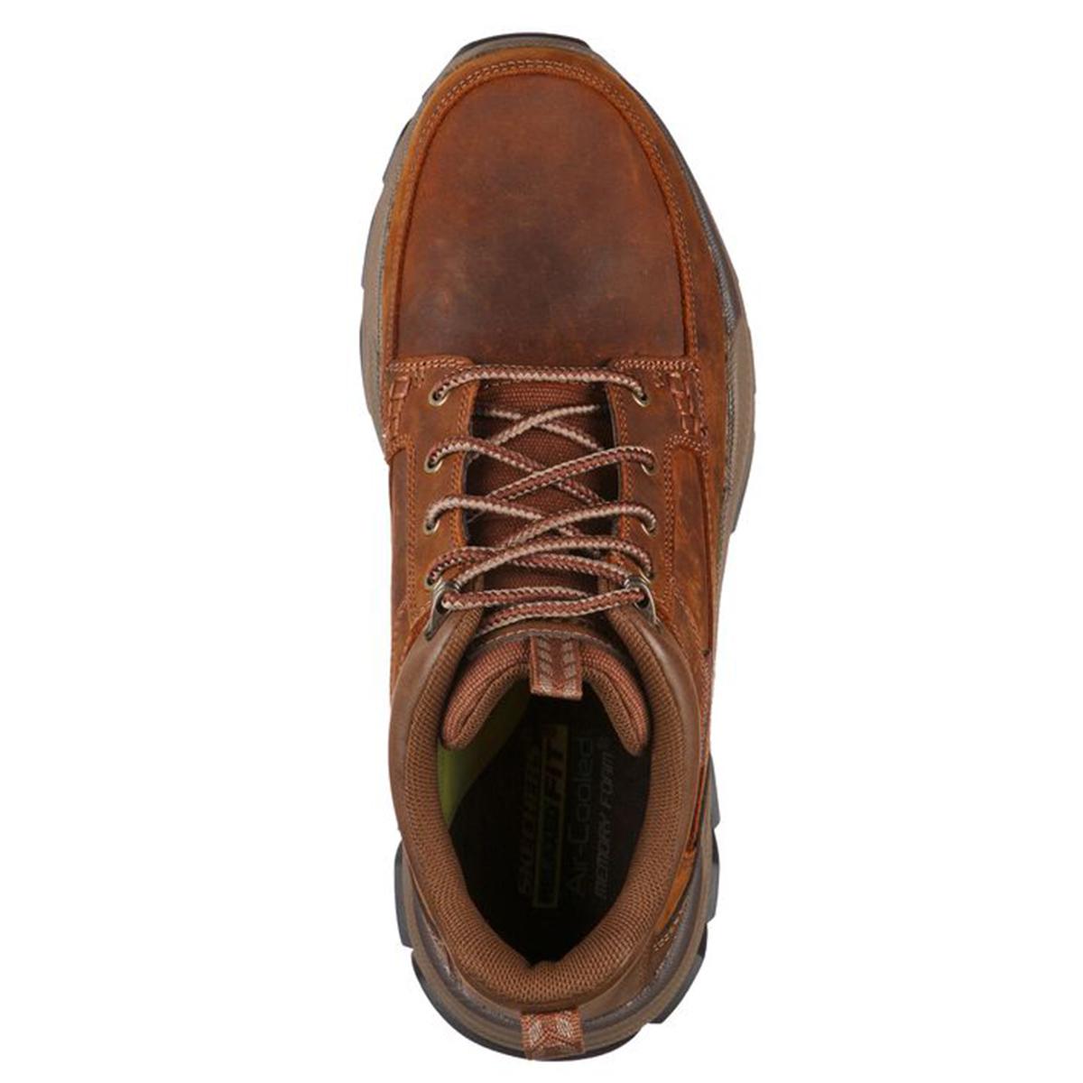Description Classic comfort and durable traction combine in the Mens Skechers Respected Boswell hiking boots. This mid-top features a water-repellent leather and synthetic upper...