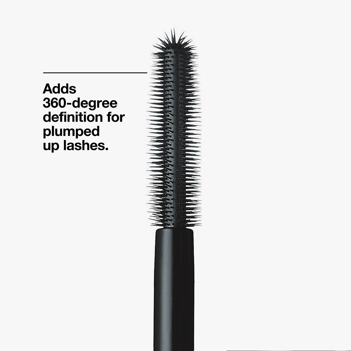 • This mascara’s oversized volumizing brush adds 360-degree definition, transforming lashes from fine and faint to bodacious and bold.