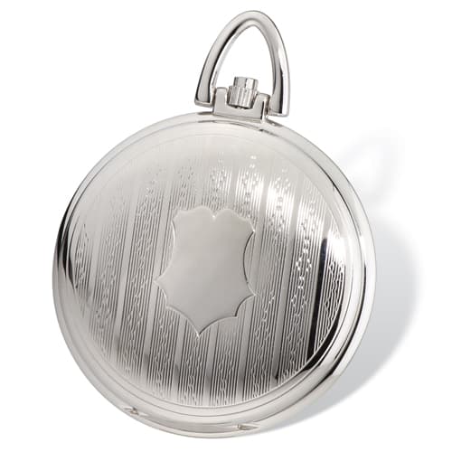 This Mens Charles Hubert White Dial Pocket Watch with shield features a 14.5 inch curb chain, brass case, dial with date, chrome finish, and can be engraved.Style: XWA4912.Limited Manufacturer´s Warranty.