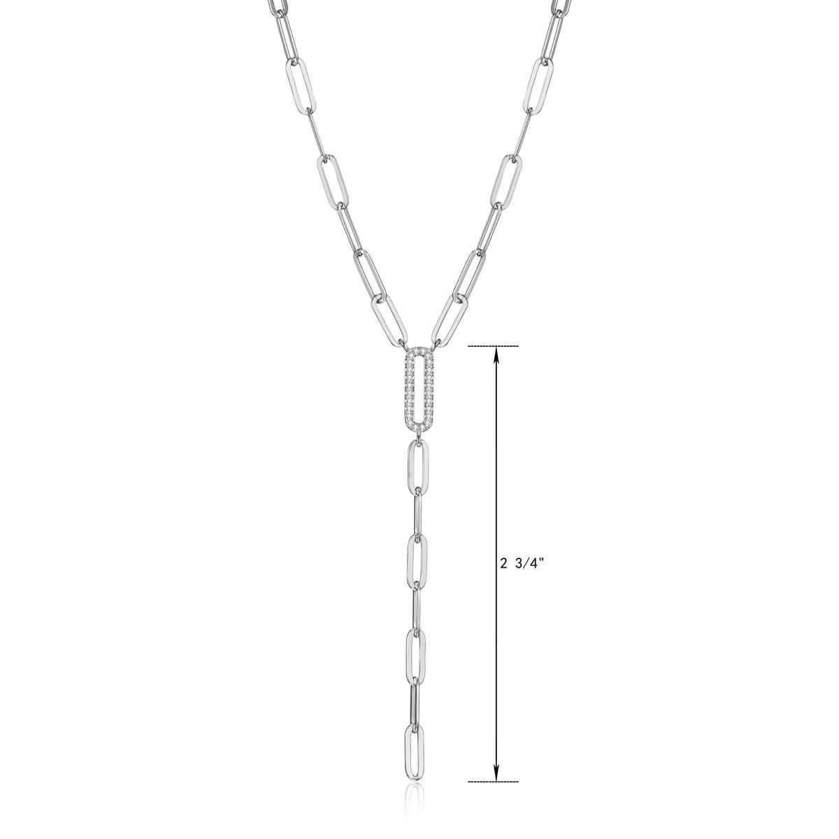 Forever Facets Sterling Silver Y Shape Paperclip Necklace