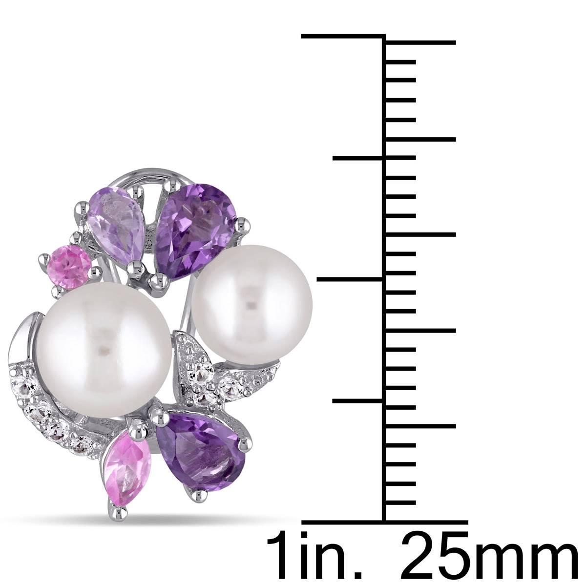 Turn heads with these Gemstone Classics™ Rose de France pearl cluster earrings. The earrings also feature pear-cut Rose de France with marquise-cut and round-cut created Rose sapphire gemstones. The earrings are secured with clip-back closures.