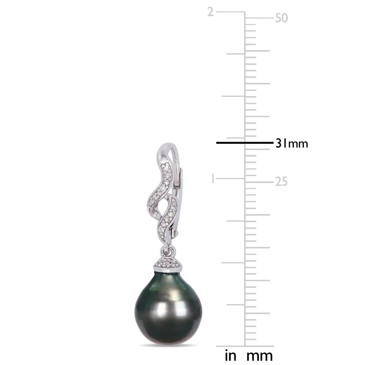 Capture the delicate smile on her face when you gift her these Gemstone Classics™ Tahitian pearl twisted drop earrings. Polished to a brilliant shine, these flattering Tahitian pearl and diamond accent earrings are the perfect addition to any jewelry collection. These pearl and diamond earrings are secure with leverback closures.