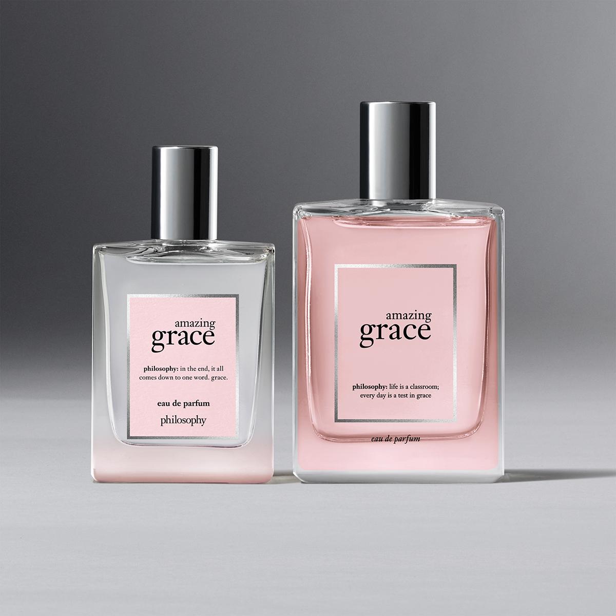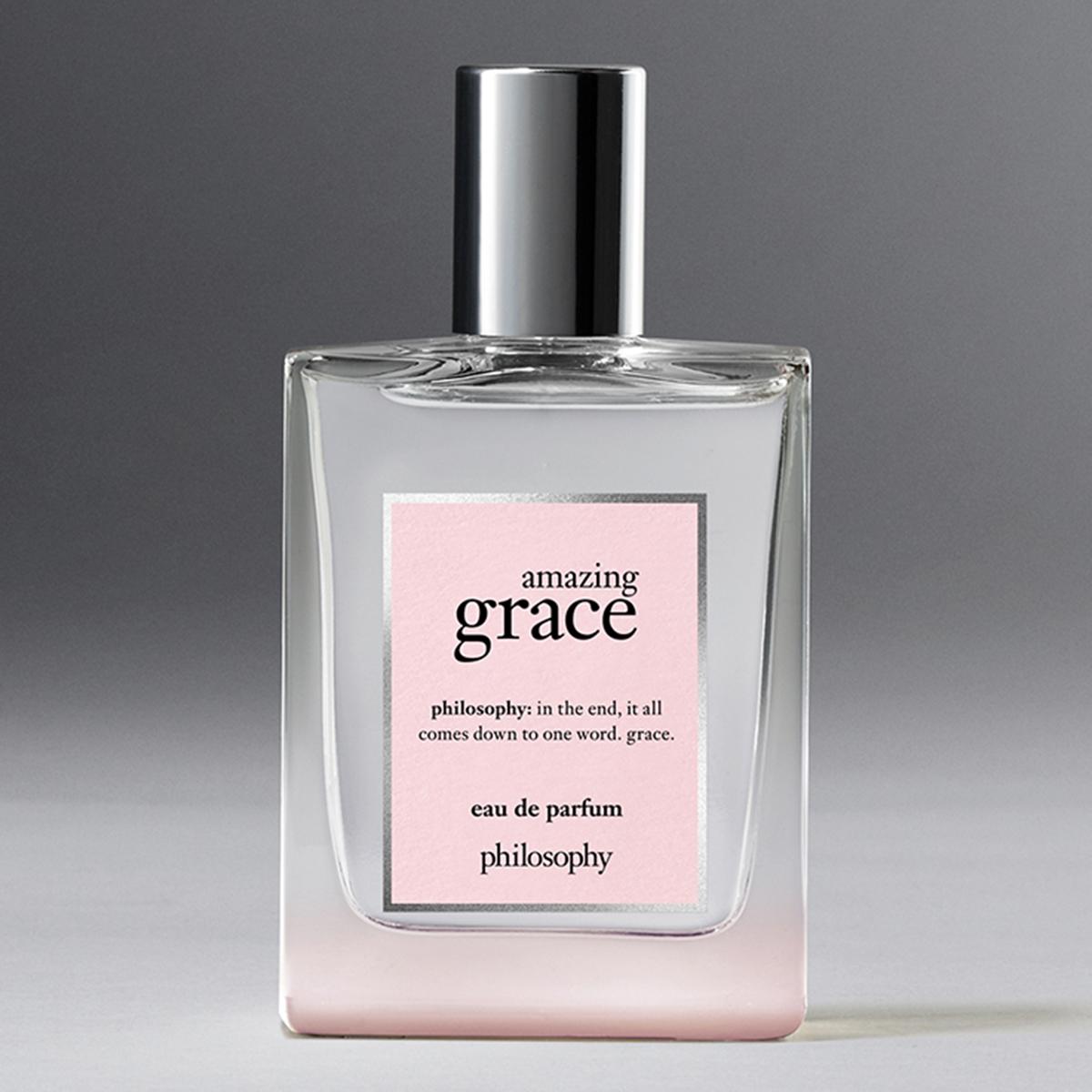 Philosophy Amazing Grace Eau de Parfum perfume is formulated with the richest, most refined blend of fragrance oils to provide a finer, stronger, longer lasting scent. It is lightly tinted pink and comes in an elegant 2 oz. Glass bottle. Enhance your well-being while smelling infinitely clean and beautifully feminine.