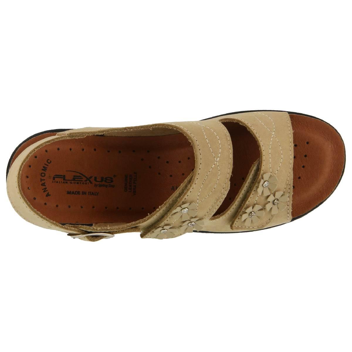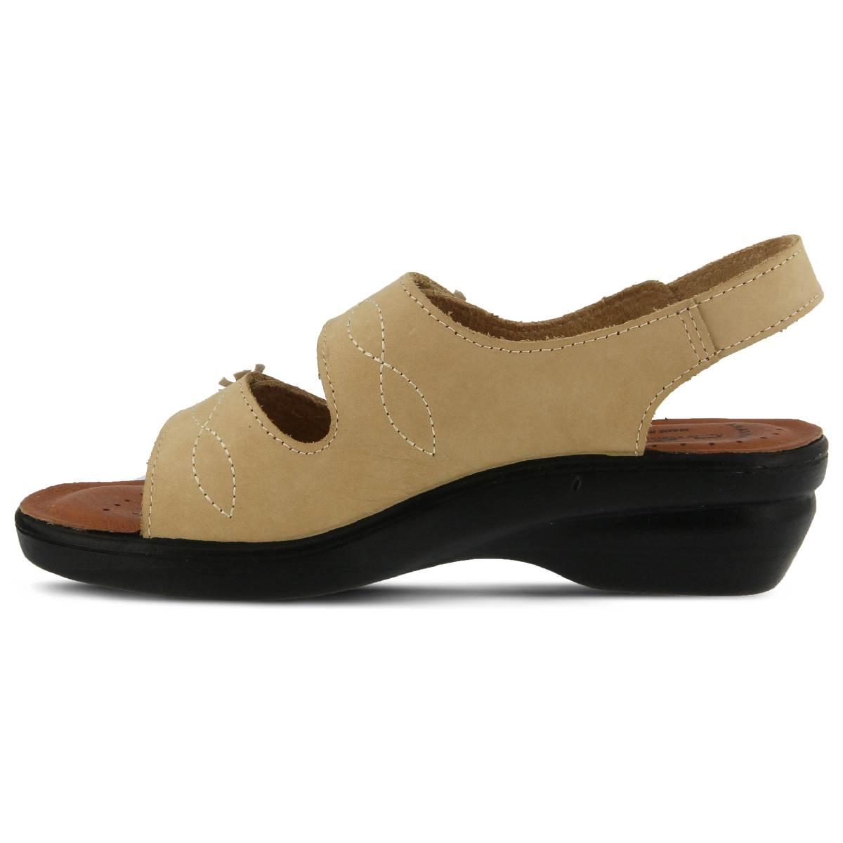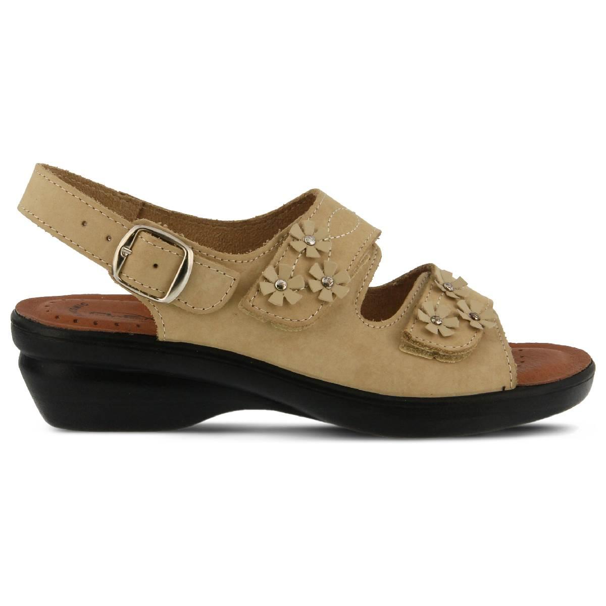 Description The Womens Flexus® By Spring Step Ceri slingback strappy sandals showcase nubuck leather uppers with tonal leather flowers and adjustable hook and loop straps. They...