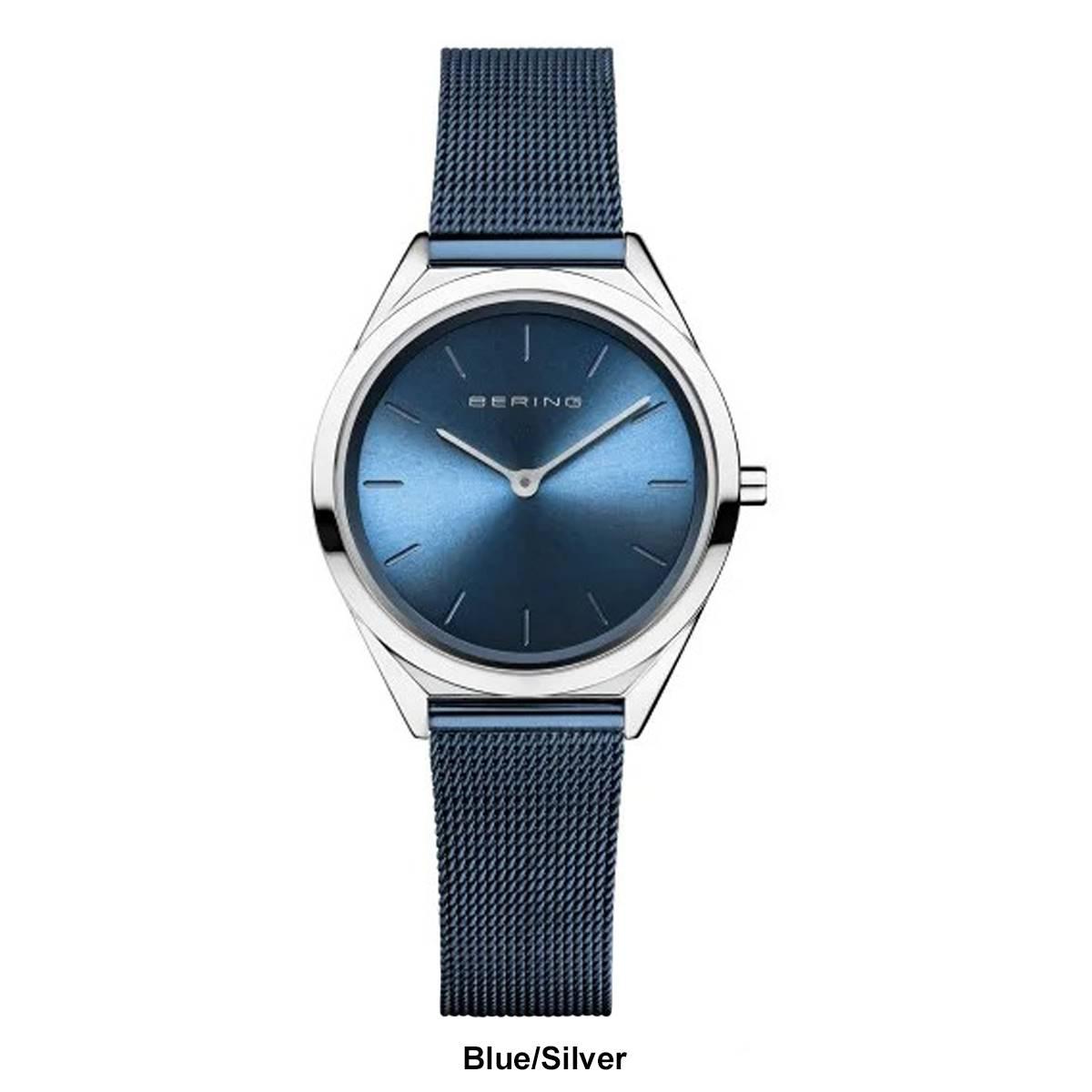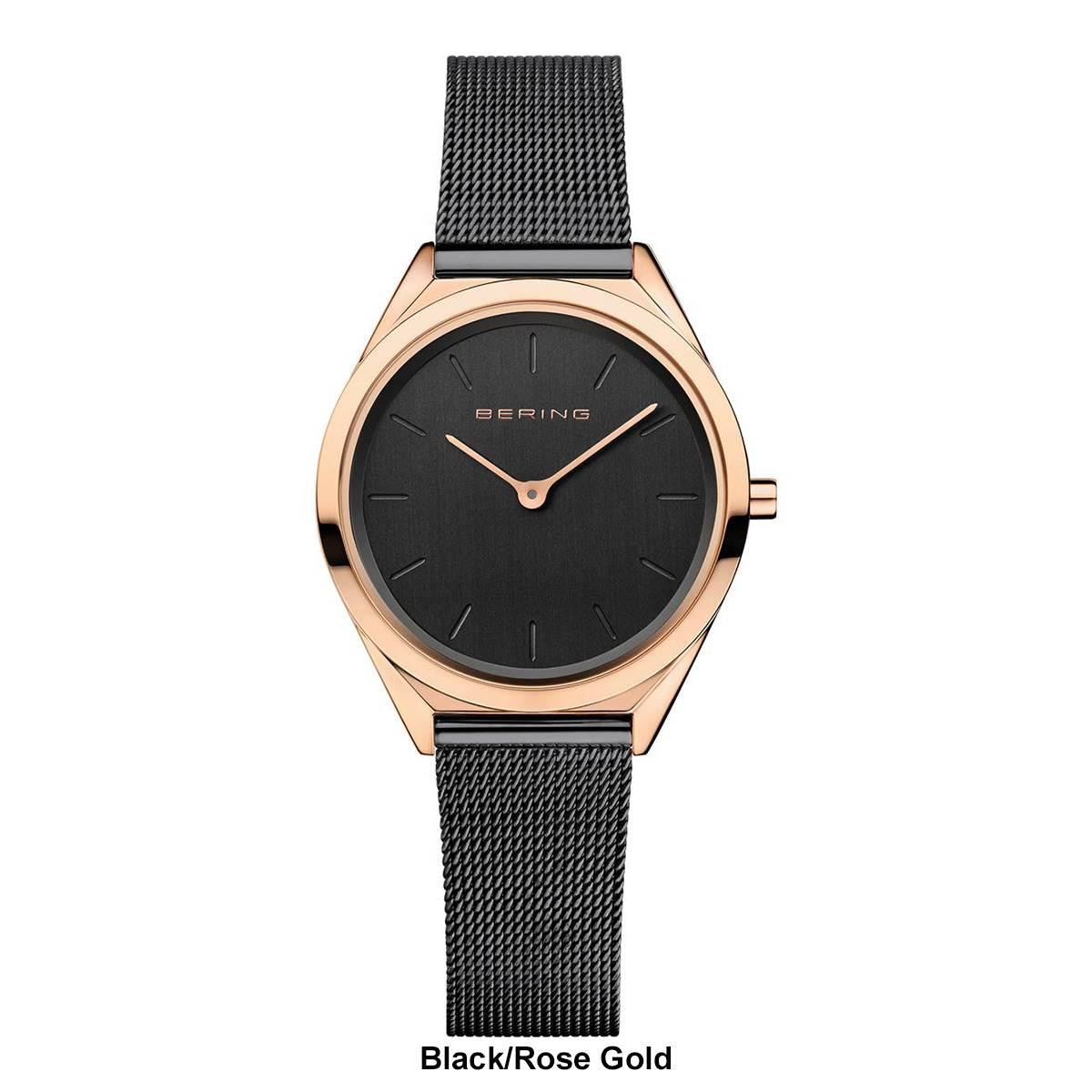 With just a few millimeters in thickness, this Womens BERING ultra slim sapphire watch is one of the slimmest watches on the market. High-quality sapphire crystal protects the dial against scratches. Feels very comfortable on the wrist with its woven Milanese strap. The ultra slim link features strong stainless steel link straps.