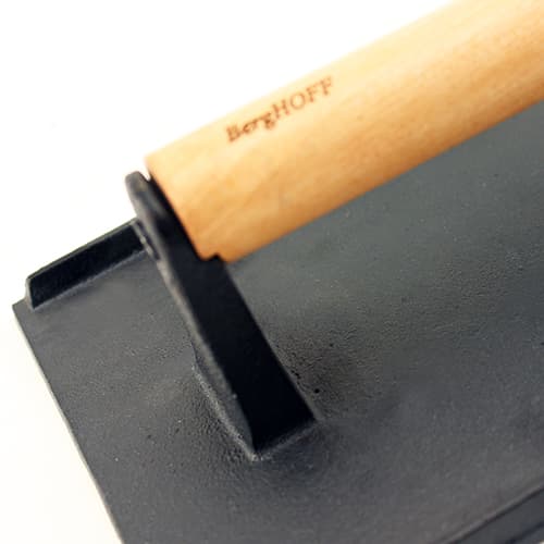 THe BergHOFF Cast Iron Bacon/Steak Press is made of heavy duty cast iron with hammered finish. This bacon press cooks both sides evenly, leaving little room for shrinking. Great for steaks! Dishwasher safe.Limited Manufacturer´s Warranty.