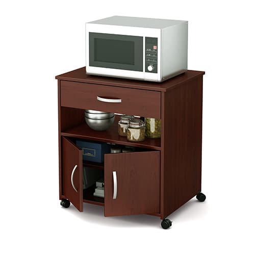 Description This South Shore Axess cherry microwave cart on wheels was designed to give you the extra storage space you need to solve the problem of kitchen clutter. This compact...