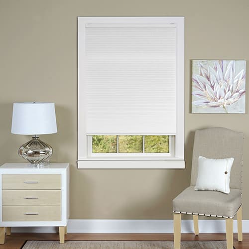 The Cordless Honeycomb Pleated Cellular Shade features elegant 3/8” cells that insulate rooms all year long. The 100% non-woven Polyester cells filter light while still giving privacy. With no cords to tangle, this window treatment is child and pet safe! To operate, simply lift or lower bottom rail to raise or lower shade. This shade is easy to install (all hardware is included), and can be mounted inside or outside.