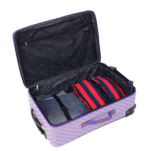 The American Flyer Signature 4-piece Luggage Set showcases added corner protection for high impact areas. The Uprights feature an additional 2.5-inches of additional packing space, and feature a telescoping handle with top and side handles for simple mobility with inline skate wheels that offer a more smooth and quiet ride. The wheeled duffle features a recessed telescoping handle, and the cosmetic satchel offers a detachable shoulder strap with exterior pockets for added storage. Wipe Clean.