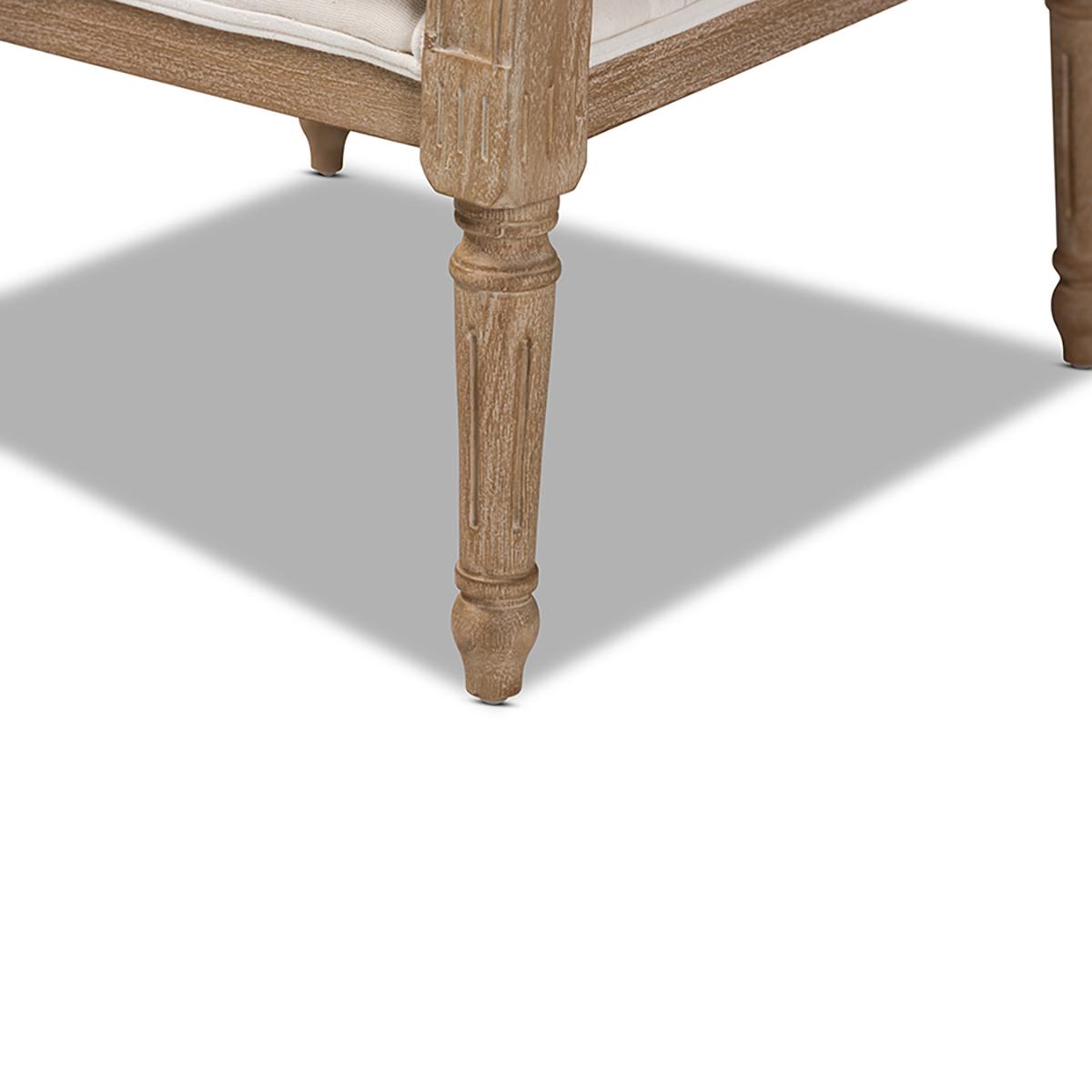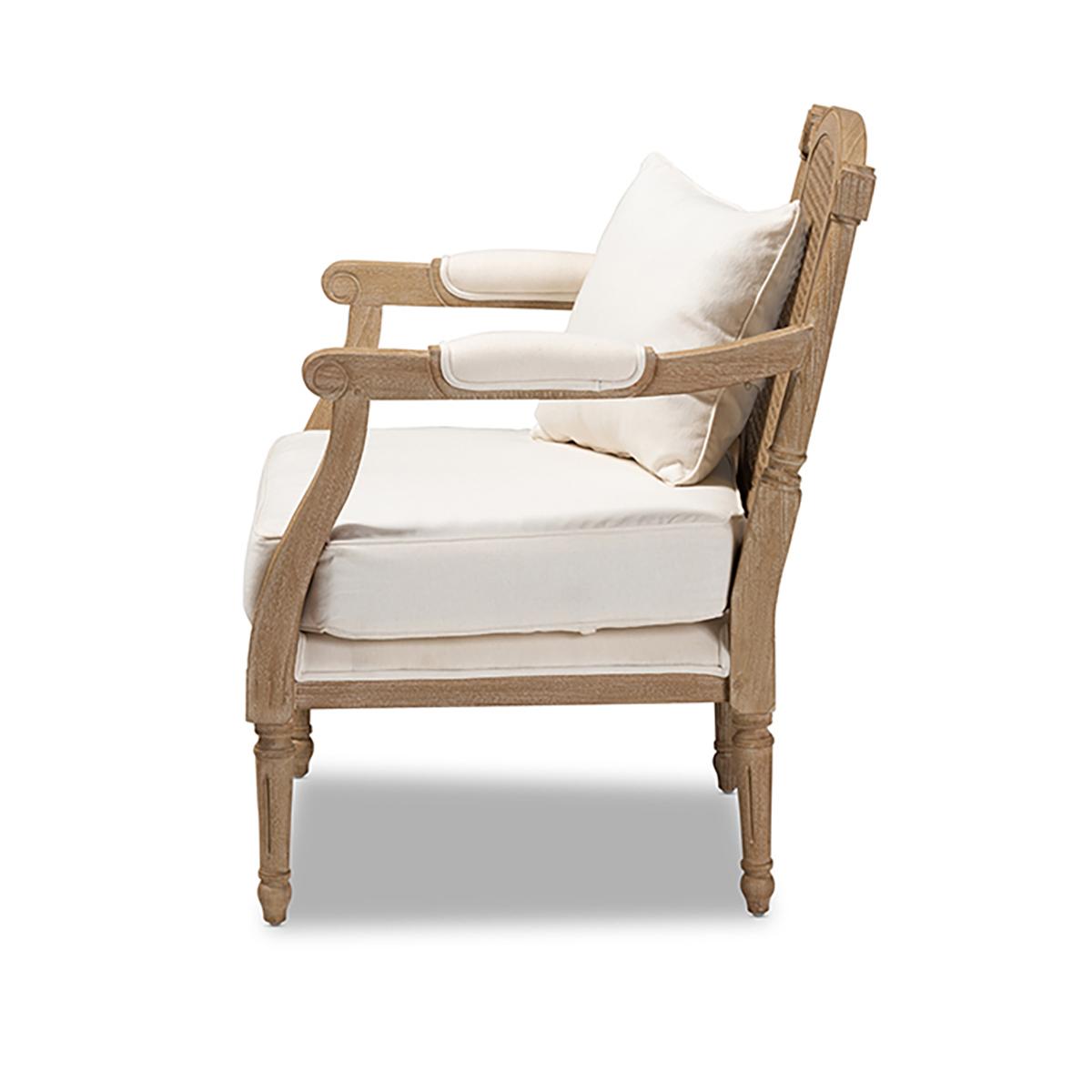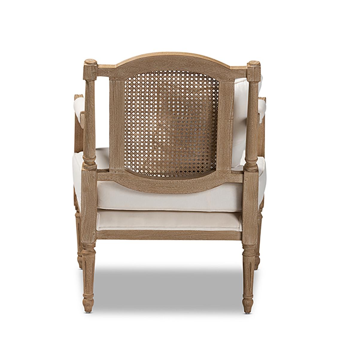 Description Adds elegance to any room. Constructed from solid mahogany wood, the Baxton Studio Clemence armchair displays a natural white-washed finish for an antique look....
