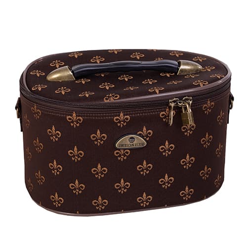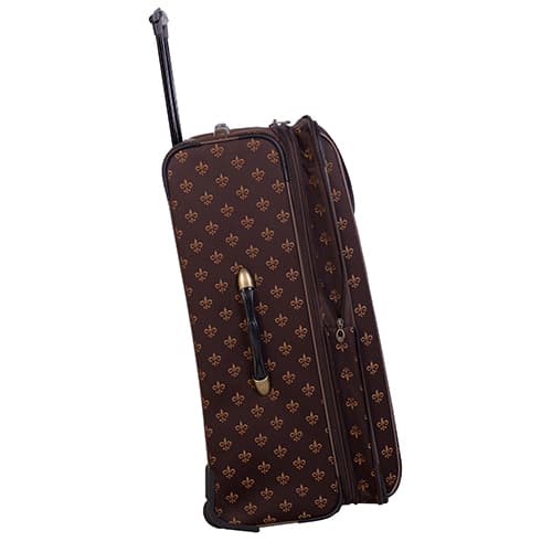 The American Flyer Fleur De Lis 4 piece luggage set showcases a beautiful fully lined interior and a classic Fleur De Lis design. The Upright Spinners feature an organizing zippered mesh pocket and shoe pockets on the inside with additional 2.5-inches for added packing space when needed. A retractable and recessed telescoping handle with comfortable top, side and bottom carrying handles, exterior pockets for better organization, reinforced piping for added corner protection, and inline skate wheels. The doctor bag is spacious enough for all of your personal accessories, and includes an American Flyer round cosmetic case. Wipe to clean.