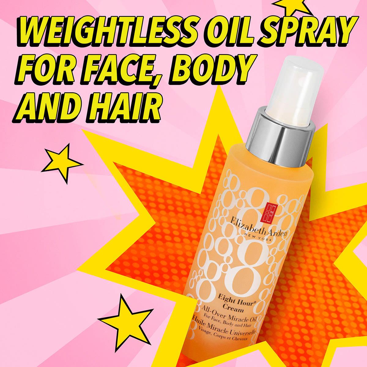 Description Eight Hour All-Over Miracle Oil Helps to firm and strengthen skin and conditions and nourishes hair. Clinically proven to moisturize for up to 8 hours*. Multi-use...