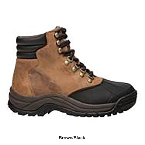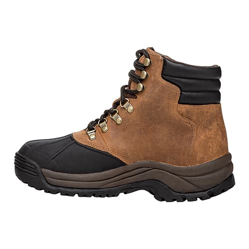 These Mens Propèt® Blizzard mid lace work boots showcase rugged Scotchgard® treated leather uppers, with a durable molded rubber toe for weather resistance. They feature a speed lacing system for convenience and adjustability, a Vaporex® heat retaining insole system for added insulation and cushion. The Thinsulate® lining is perfect for warmth, and Sealtex® waterproof bootie construction. They are lightweight with cushioned EVA midsoles and self-cleaning rubber outsoles.