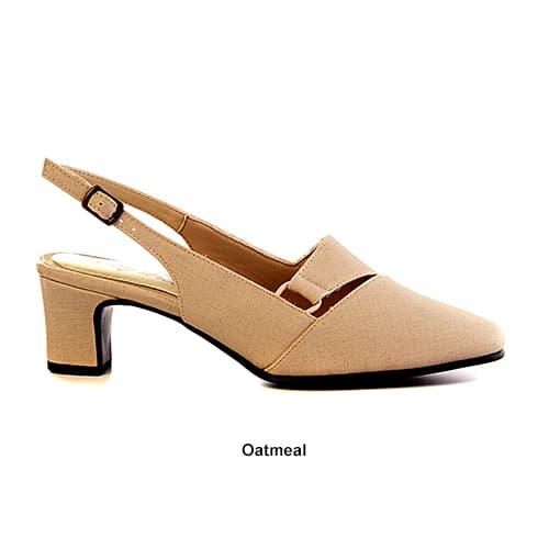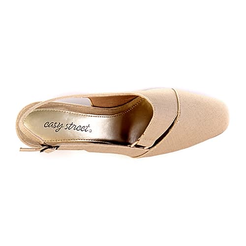 Description Thses Womens Easy Street Choice soft fabric slingback pumps feature faux leather uppers, ankle straps with a decorative buckle detail, cushioned footbeds, a square...