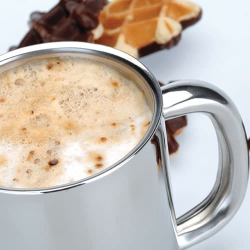 This BergHOFF Straight 2-piece stainless steel coffee mug set features a double walled mug with stay cool handles. Holds up to 0.4 quarts. Dishwasher Safe. Dimensions: 4.33”H x 3.54”W x 4.52”D.Limited Manufacturer´s Warranty.