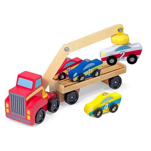 Description The Melissa & Doug® Magnetic Car Loader is a big rig that has a magnetic arm that can reach every car on the trailer. Link up the trailer to the car carrier to take...