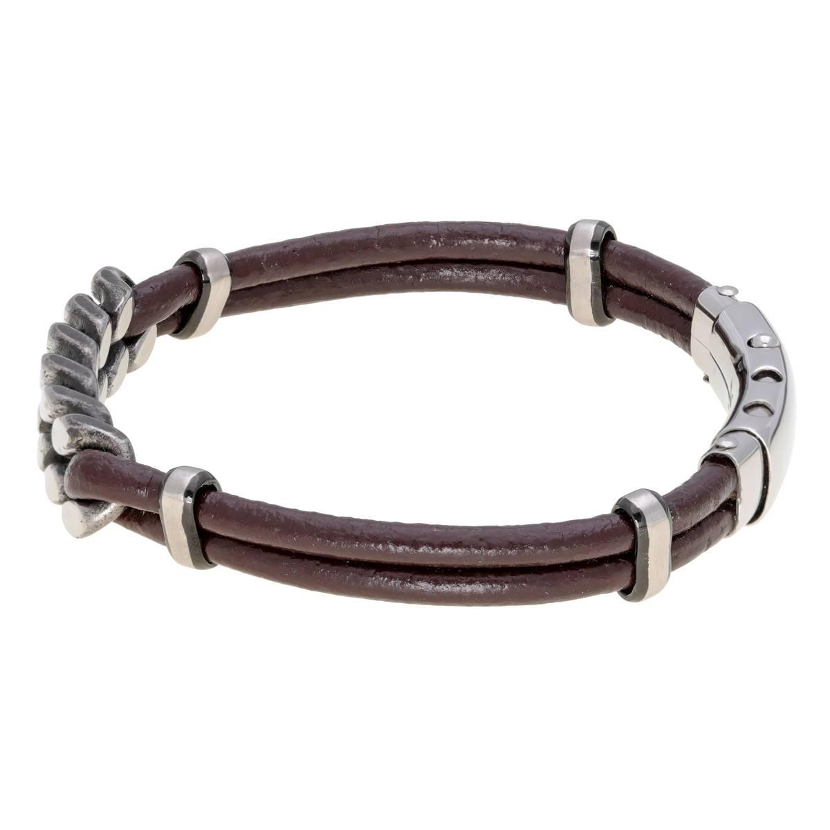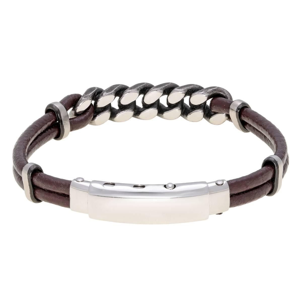 Description Smart and sleek, this natural looking Mens Lynx stainless steel brown leather bracelet amps up his rugged apparel. An edgy choice, this 10mm. wide design features two...