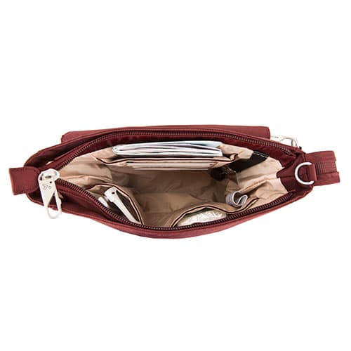 The Travelon anti-theft classic mini tote is great for cross town, campus, or country! This lightweight and compact anti-thief and pickpocket nylon crossbody bag boasts a lockable, zippered and lined main compartment that contains credit card slots and open top pockets for keeping your cell phone, favorite electronic device, and small personal items neat and handy. Made with Polyester.