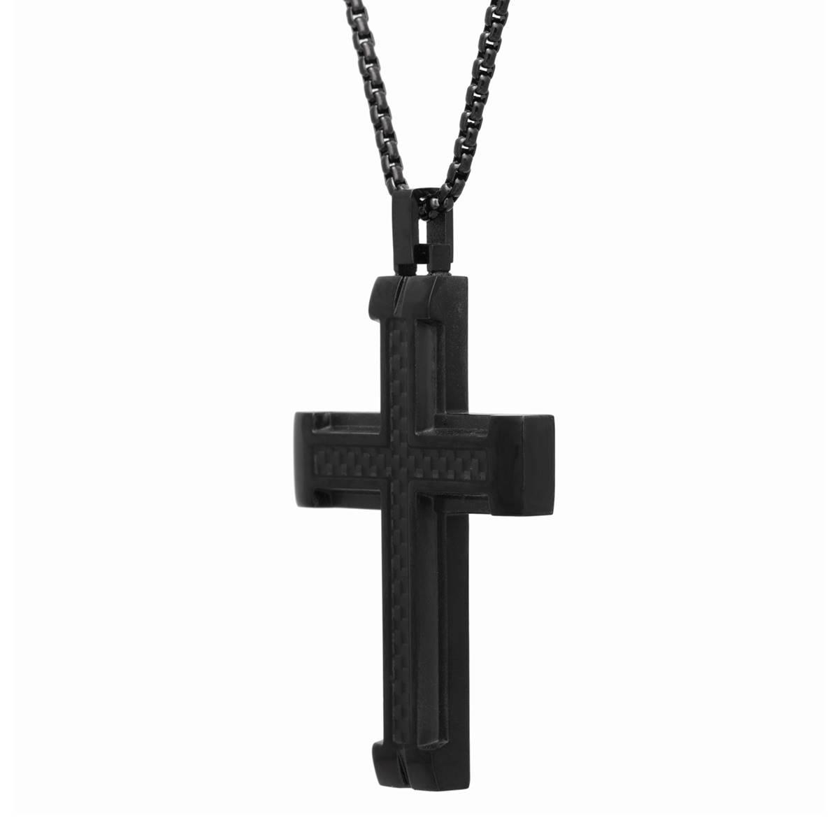 Mens Lynx Carbon Fiber & Black Ion Plating Chain Cross Pendant