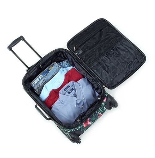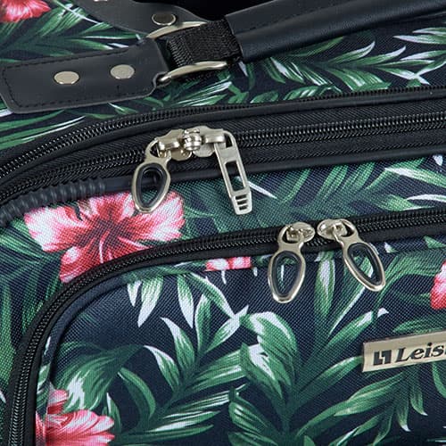 The Leisure Lafayette hibiscus pattern, 29 inch spinner is the perfect way to keep your travel stylish. This attractive bag features a roomy interior with full signature stripe lining, tie down straps, shoe pockets, and zippered mesh pockets. This also includes dual front exterior pockets, top, side, and bottom carry handles, room for up to 2.5" expansion, four multi-directional wheels, and a telescoping, locking aluminum trolley handle. Dimensions: 29" x 19" x 11" (+2.5"). Weight: 11.5 lbs.This item requires oversize delivery. Please refer to the Order Summary in the Shipping step at checkout for delivery charge.When ordering multiples of this item, additional shipping fees may be charged. Before levying such charge, we will contact you with the proposed amount of the charge. If you do not want to accept the surcharge, we will cancel your order without any penalty to you.