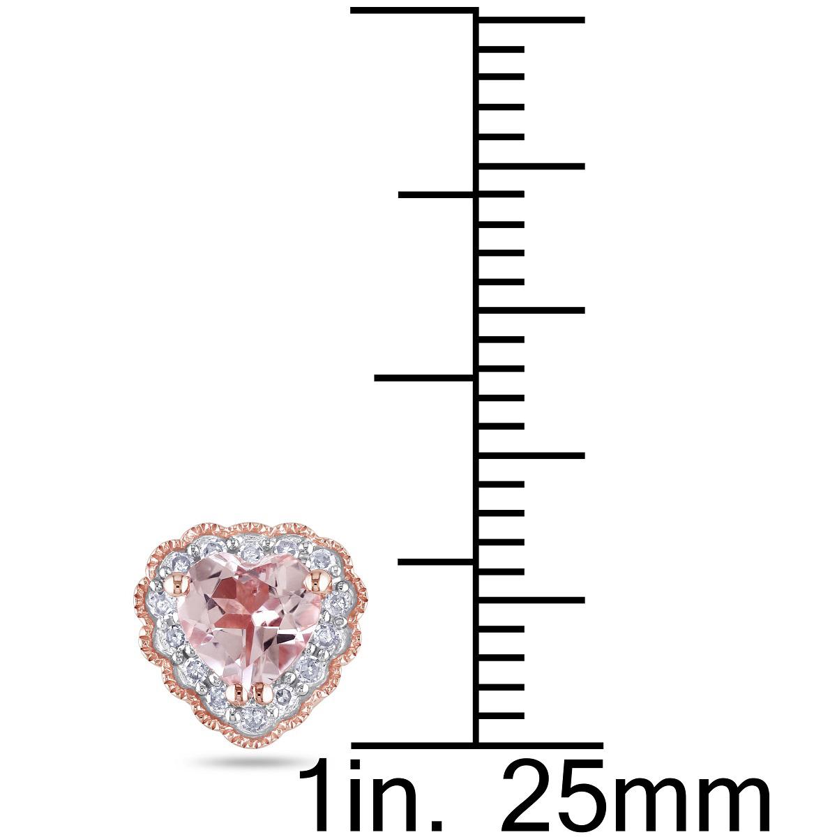 These Gemstone Classics™ 10kt. rose gold pink heart earrings are a showstopping piece for your jewelry collection. These earrings feature heart-cut 1ctw. morganite stones surrounded by round 1/10ctw. white diamonds. This classy pair is set in rose gold and are secured with butterfly backs.