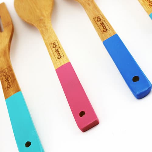 The BergHOFF CooknCo 6-piece Bamboo utensil set is both stylish and functional. The set includes a 12" Turner, slotted turner, spoon, slotted spoon, salad spoon, and slotted salad spoon. The Bamboo is seeing a resurgence in popularity as it is considered a “green product." Cleaning bamboo is simple, just wash with soap and water. Set includes two bamboo spatulas and four oversized spoons with multicolored handles. Dishwasher safe.