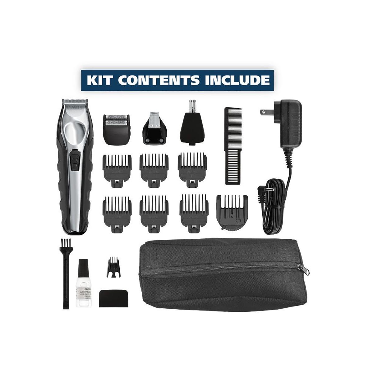 The Wahl lithium ion all in one shaver s powerful, quiet, lightweight and designed to speed up your grooming time. It comes with many different head attachments so that you can groom your facial and body hair to different lengths and preferences. The multi-groom beard trimmer has the look, feel and quality that you expect from Wahl.Model 9888-600.