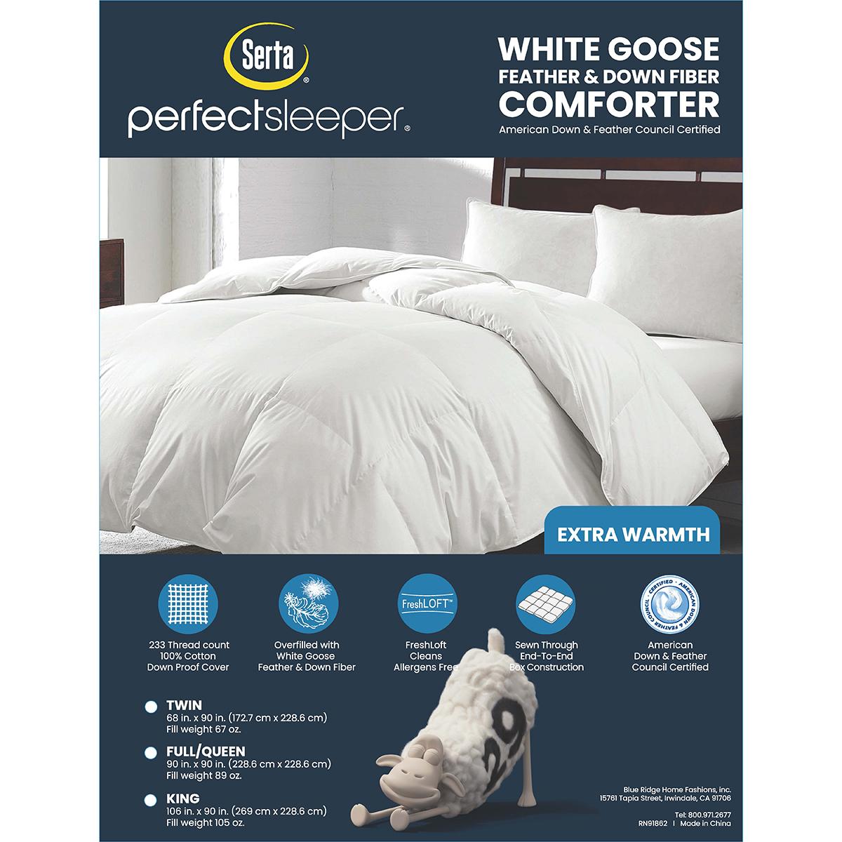 Description This Serta® white goose feather and down fiber comforter is the perfect solution for warmth and comfort. The unique fill gives you the look and feel of an all...
