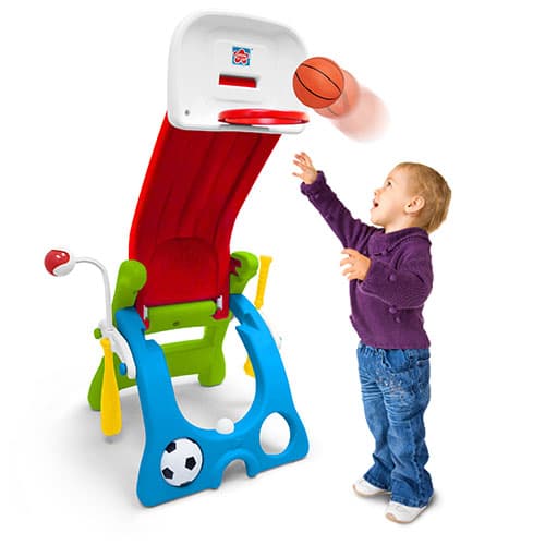 The Grow´n Up Quick Flip 6 in 1 sport activity center is a multi-sports center with games such as basketball, soccer, baseball, golf, t-ball, and slide play. This unique sports center is the right size for toddlers and a great way to help build coordination, balance, gross motor skills, and cognitive development. The compact size makes it simple to place both indoors and outdoors with a 50lbs. weight limit on the slide. The folding function makes for easy transportation and storage, and the accessories included are a golf club, a golf ball, a basketball, a soccer ball, a baseball bat, and a baseball. Dimensions: 47"H x 20"W x 24"D.Limited Manufacturer´s Warranty.This item requires oversize delivery. Please refer to the Order Summary in the Shipping step at checkout for delivery charge.