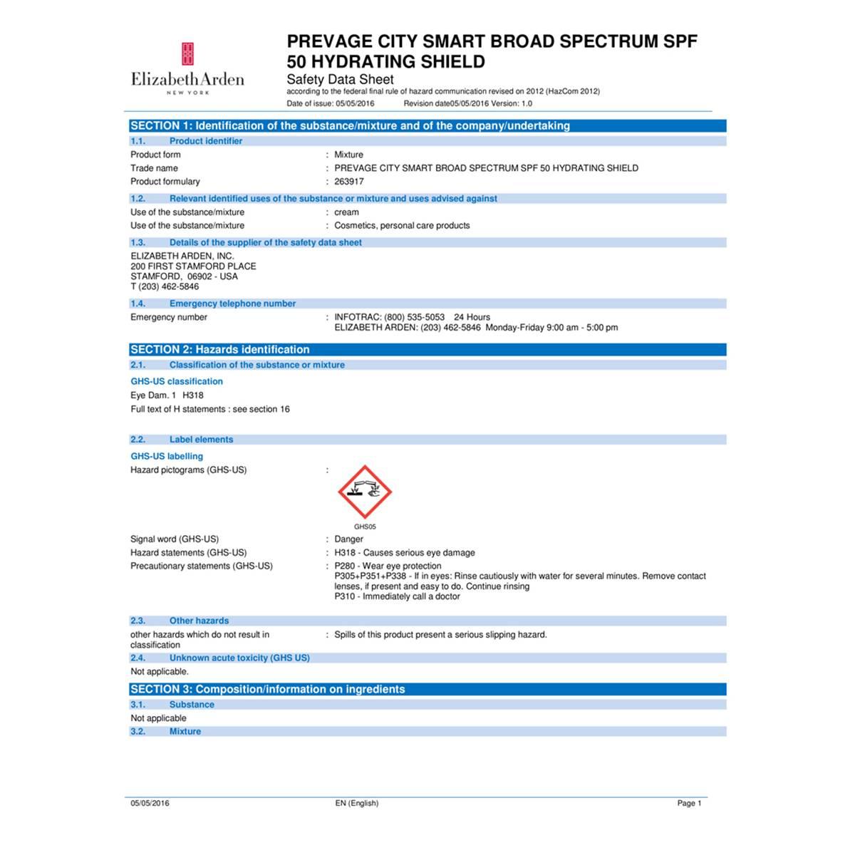 Description Elizabeth Arden´s Prevage® City Smart Broad Spectrum SPF 50 Hydrating Shield Superior anti-aging technology — it’s in our DNA. This first-of-its-kind skin...