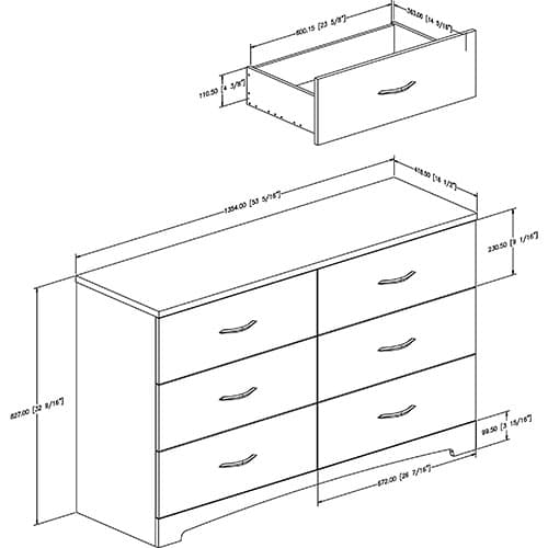 Thanks to its neutral finish and timeless look, this South Shore Step One 6-drawer double dresser features sleek lines and blends perfectly into other decors. This furniture was designed just for tighter spaces! The furniture lets you picture a simple décor that´s brought to life through the use of bright colors. Dimensions: 32.5"H x 53.25"W x 16.25"D.This item requires oversize delivery. Please refer to the Order Summary in the Shipping step at checkout for delivery charge.