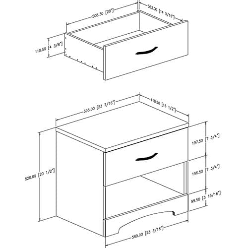 Thanks to its neutral finish and timeless look, this South Shore Step One 1-drawer nightstand features sleek lines and blends perfectly into other decors. This furniture was designed just for tighter spaces! The furniture lets you picture a simple décor that´s brought to life through the use of bright colors. Dimensions: 20.5"H x 23.25"W x 16.25"D.This item requires oversize delivery. Please refer to the Order Summary in the Shipping step at checkout for delivery charge.