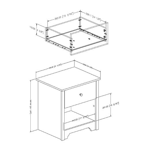 Description This South Shore Vito 1-drawer nightstand features embellished handles in a matte nickel finish and a decorative kick plate. It is a perfect blend of minimalist style...