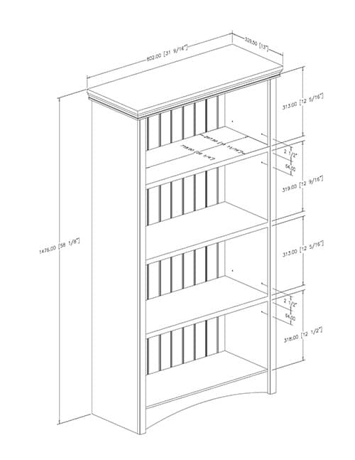 The South Shore 4-shelf bookcase blends form and function with its plentiful and convenient storage spaces. This bookshelf was designed so everything can be tidy and within reach. A highlight of this item is its wooden board effect. Dimensions: 58.13"H x 31.5"W x 13"D.